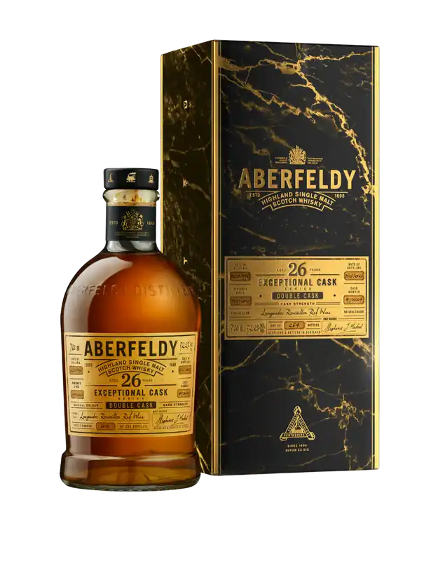 The Aberfeldy 26 Year Old Languedoc Cask Finish Scotch is a distinguished release from the Exceptional Cask Series, a collection curated by Malt Master Stephanie Macleod. This rare expression embodies the artistry of single malt craftsmanship, aged for 26 years and finished in select Languedoc red wine casks. Limited i