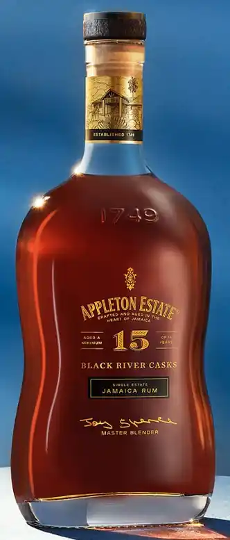 Appleton Estate 15 Year Old is a tribute to the iconic Black River, the source of the limestone-filtered water used to craft our rums. The blend of rare hand-selected pot and column still rums have all been aged for a minimum of 15 years in the tropical climate of Jamaica.rAromas of toasted almond and hazelnut, followed by notes of orange peel, vanilla, and hints of roasted coffee and molasses.