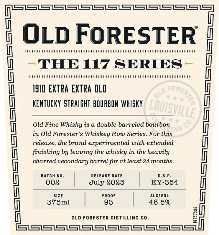 The Old Forester 117 Series 1910 Extra Extra Old is an extraordinary small-batch release from Old Forester’s acclaimed Whiskey Row Series. This double-barreled bourbon undergoes extended finishing, resting for 24 months in a heavily charred secondary barrel. The result is a rich and robust Kentucky Straight Bourbon Whisky that takes the original 1910 Old Fine Whisky to an intensified level of complexity and depth. Carefully distilled and bottled in Louisville, Kentucky, this limited-edition release boasts bold, layered flavors and a higher proof, making it a must-have for bourbon enthusiasts and collectors. Tasting Notes: Nose: Deep caramel, toasted oak, rich vanilla, and dark chocolate. Palate: Intensely smooth with notes of butterscotch, charred marshmallow, baking spices, and dark dried fruits. Finish: Long, warm, and lingering with a satisfying balance of sweetness and smoky oak. How to Enjoy: Neat: Best savored straight to