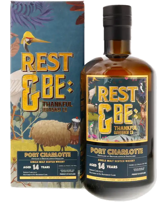 REST & BE THANKFUL SCOTCH SINGLE MALT SINGLE CASK DISTILLED AT BRUICHLADDICH PORT CHARLOTTE 14YR 700ML Instant Buy