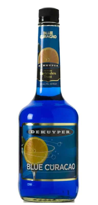 DeKuyper Blue Curacao Orange Liqueur USA. Distillates of oranges, lemons and curacao fruit are blended to compose this extremely versatile blue liqueur.
